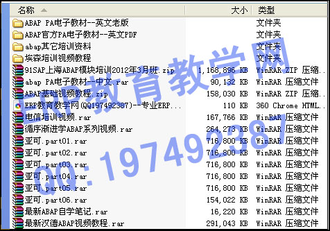 5.【ABAP]四套一套中国电信2G 一套埃森哲 1G 一套亚可 6G 一套循序渐进学ABAP系列 ,新加入91SAP培训中心在上海2012年3月份的ABAP培训视频和文档。赠送SAP新出的中文官方PA教材,还独家额外增量:最新汉得ABAP模块视频教程、循序渐进ABAP视频教程、ABAP基础视频教程等