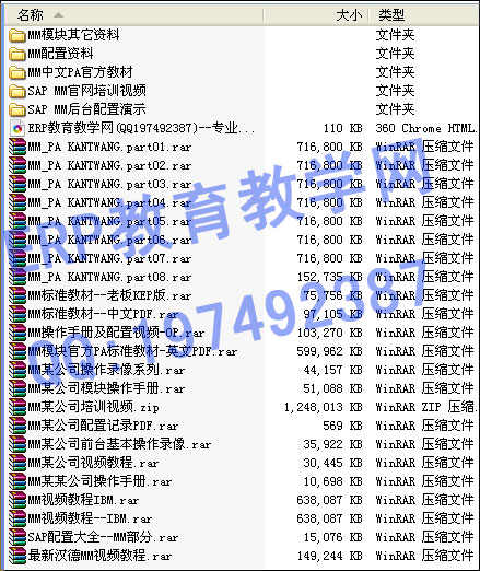 1、独家增量SAP视频教程,这套包括了SAP的ABAP、BASIS、CRM、FI、CO、BW、HR、CRM、PM、PLM、MM、PP、WM、QM、SD15个模块SAP顾问学院经典视频教程外,还扩展国内外多家SAP培训机构培训视频教程及多家国内外知名公司内部培训视频教程及资料,独家赠送最新有声后台配置视频教程,压缩后共89G,25DVD光盘,解压后,超过200G,是学习SAP难得的一套视频教材,更详细的文件列表及目录,请联系我们发送文件列表及各模块的试看样片!