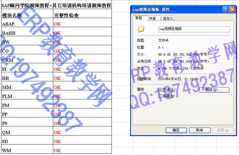 你现在看的这套是:新SAP 15模块视频教程保留经典版再新加多公司培训视频及资料,2013年8月再次加量,压缩后88.8G,解压出来,超过200G,再送5DVD相关资料 此套视频教程包含SAP全套15模块(ABAP、BASIS、CRM、CO、FI、MM、PLM、PM、PP、WM、BW、HR、PS、QM、SD)的视频教程,合计123G,均为SAP高级顾问主讲,绝对权威、绝对超值!