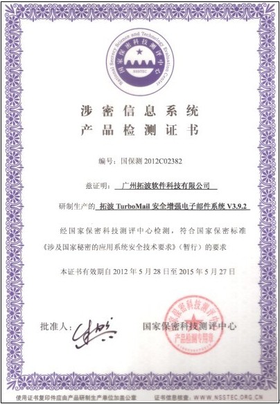 ★ 在资质方面,TurboMail邮件系统已成功通过国家保密局涉密信息系统安全保密测评中心出具的涉密信息系统产品认定,在保护邮件数据安全方面实力是毋庸置疑的,特别是针对机场、政府等对邮件涉密信息要求严格的单位。