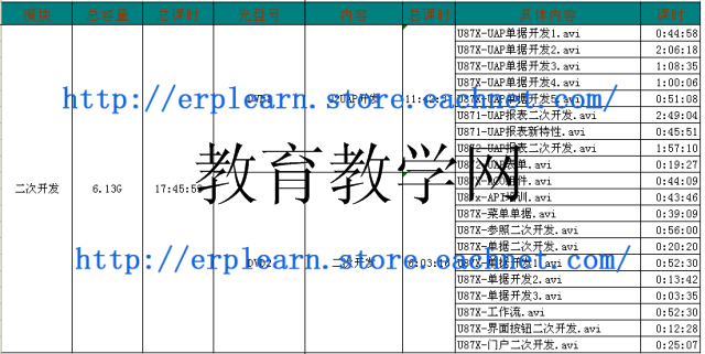 这款视频共有52.8G,视频资料是统一的AVI格式,时长达170个小时,共有20张DVD光碟,购全套附送87X培训文档1DVD,另送用友实施顾问资料光盘1DVD,合计22DVD!