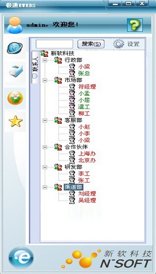 极通ewebs信息化集中管理平台V3.2(www.n-soft.com.cn)为国内首款企业集中管理平台,企业为了提高企业的创新力和竞争力,正在找寻可支持更多协作方式的软件。 极通ewebs信息化集中管理平台将企业组织结构中的部门、人员和软件的模块功能融合起来,将“人”的因素有机的融入管理系统当中,从而形成更为人性化、智能化的现代企业管理平台。同时,极通ewebs信息化集中管理平台凭借自身良好的开放性与延展性,可满足不论是垂直化、流程化、亦或扁平式、离散式等多种企业管理模式的不同管理需求。 极通ewebs虚拟应用(远程接入)模块是搭建集中管理平台的核心应用,通过虚拟接入功能让企业各种IT应用(ERP、CRM、OA…..)摆脱终端设备和网络带宽的限制,实现终端用户在任何时间、任何地点、使用任何设备、采用任何网络连接,都能够高效、快捷、安全、方便地访问集中部署在服务器集群上的各种应用软件。 企业IM—即时通讯消息支持及时、实时的通信与协作,可与现有应用和业务流程整合,从而实现在当前环境中协同工作的目标。借助基于系统的工具,团队成员可以即时、安全地访问、共享内容和专业技术。 网络收藏的分享功能可把一些比较好的网页共享给大家有助于同事聚合相互的知识,同时也便于组织内的其他人查找和使用这些知识。 总而言之,封闭的系统会影响业务敏捷性。只有通过利用现有资源,并将新流程整合到现有基础设施之中,才能够构建统一的解决方案,消除“信息孤岛”。 一、虚拟接入模块